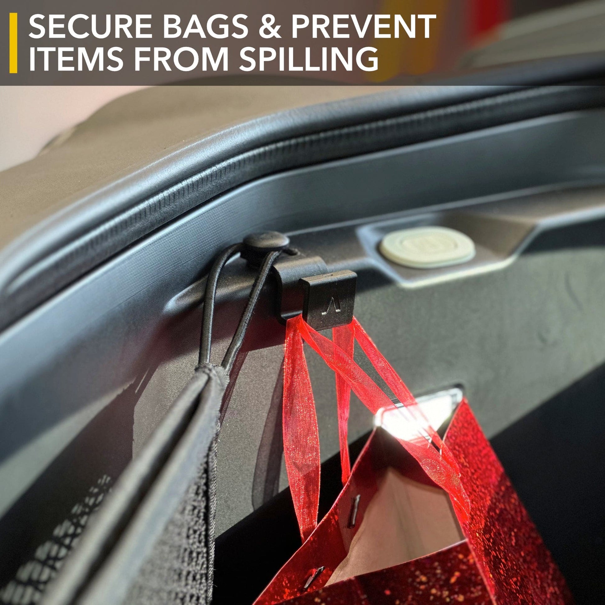 đď¸ Grocery Bag Support: Ideal for securing grocery bags. These hooks prevent your shopping from spilling in the trunk, keeping items upright and organized during transit.