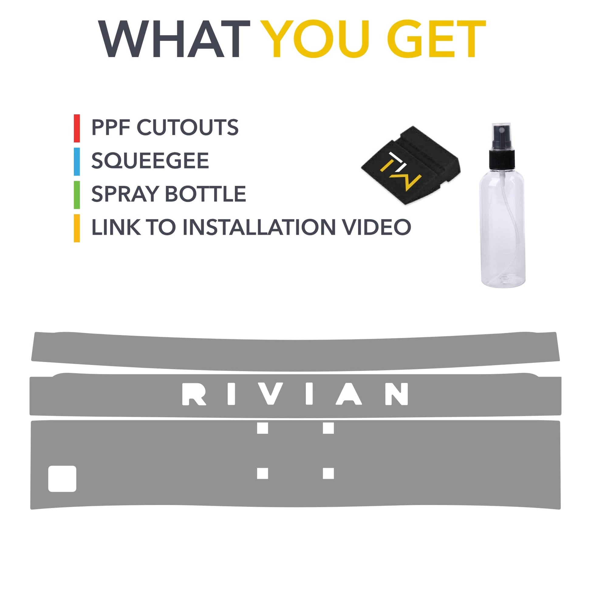 If your Rivian R1S needs protection for the tailgate, look no further than this TWRAPS pre-cut kit. It comes with letter cutouts, so you would not need to de-badge. Made of premium materials and measured to fit precisely and install as easy as possible.